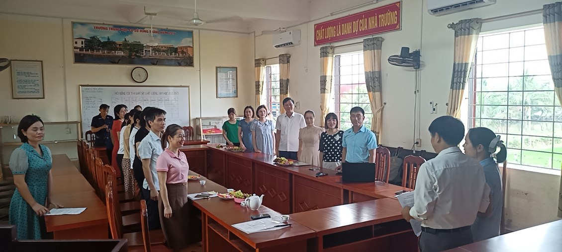 Lễ kết nạp diễn ra theo đúng trình tự, thủ tục điều lệ Đảng dưới sự chủ trì của đồng chí Nguyễn Văn Thịnh– Bí thư Chi bộ,Hiệu trưởng nhà trường cùng tập thể Ban Chi ủy và đông đủ các đảng viên trong Chi bộ.
