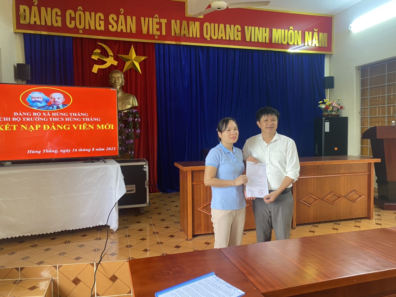 Buổi lễ kết nạp đảng viên đã diễn ra thành công tốt đẹp. Việc kết nạp 1 đồng chí đảng viên góp phần thực hiện tốt Nghị quyết của Chi bộ trường THCS Hùng Thắng quyết tâm phấn đấu đạt danh hiệu Chi bộ “Hoàn thành xuất sắc nhiệm vụ” năm 2023.