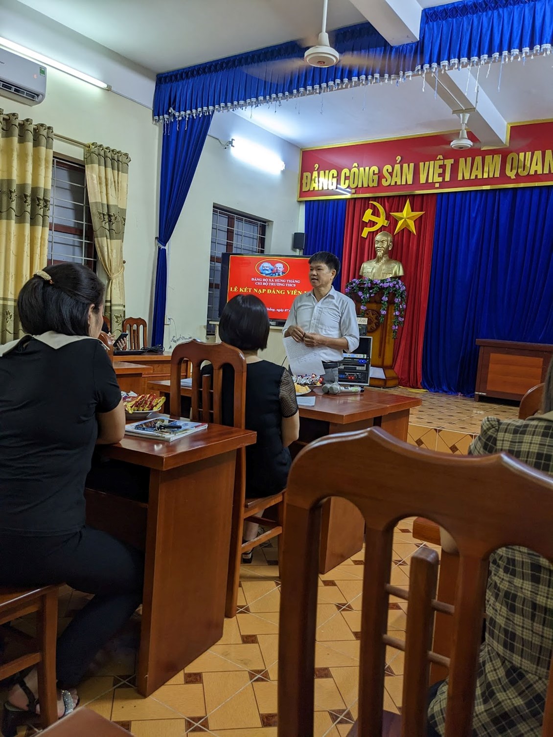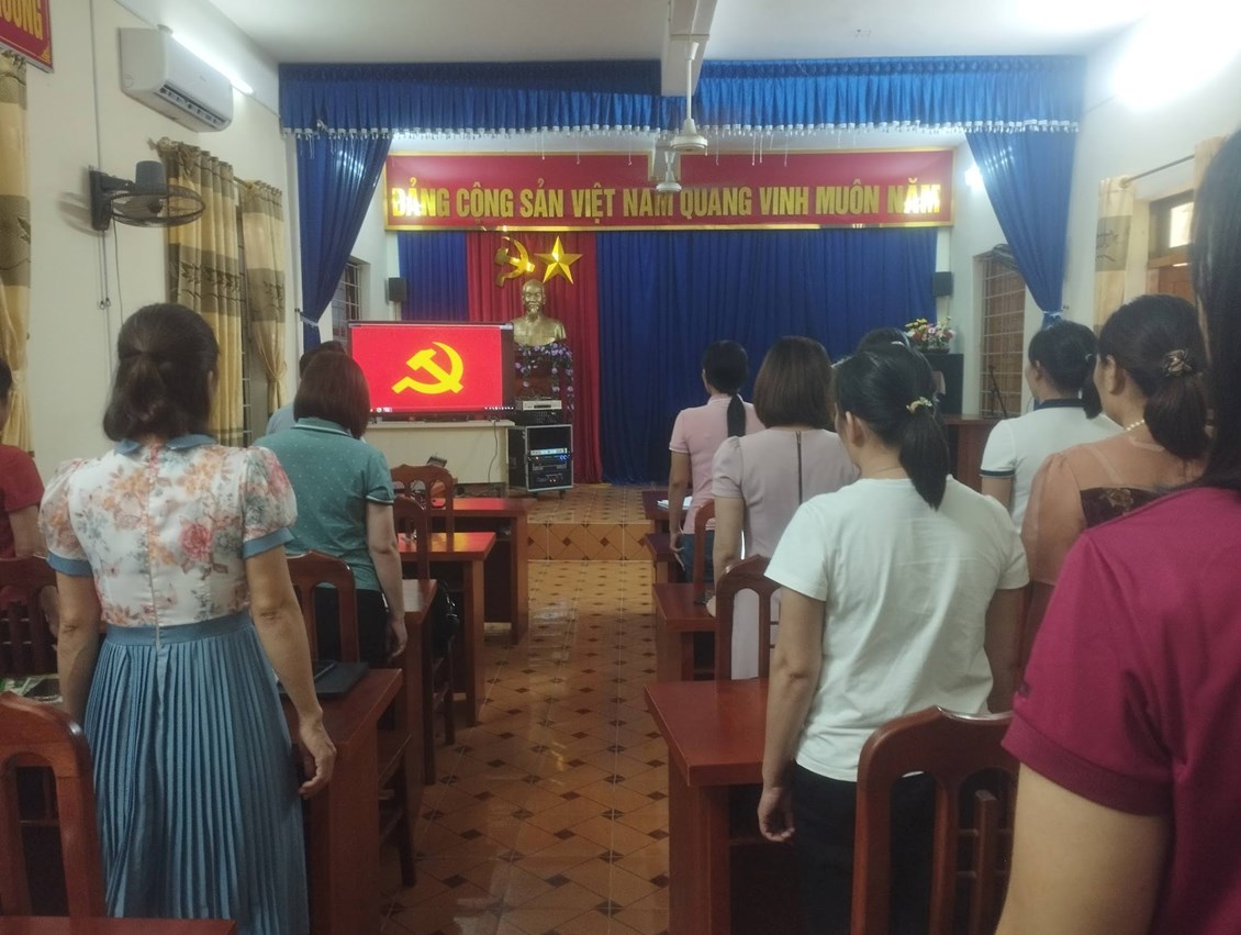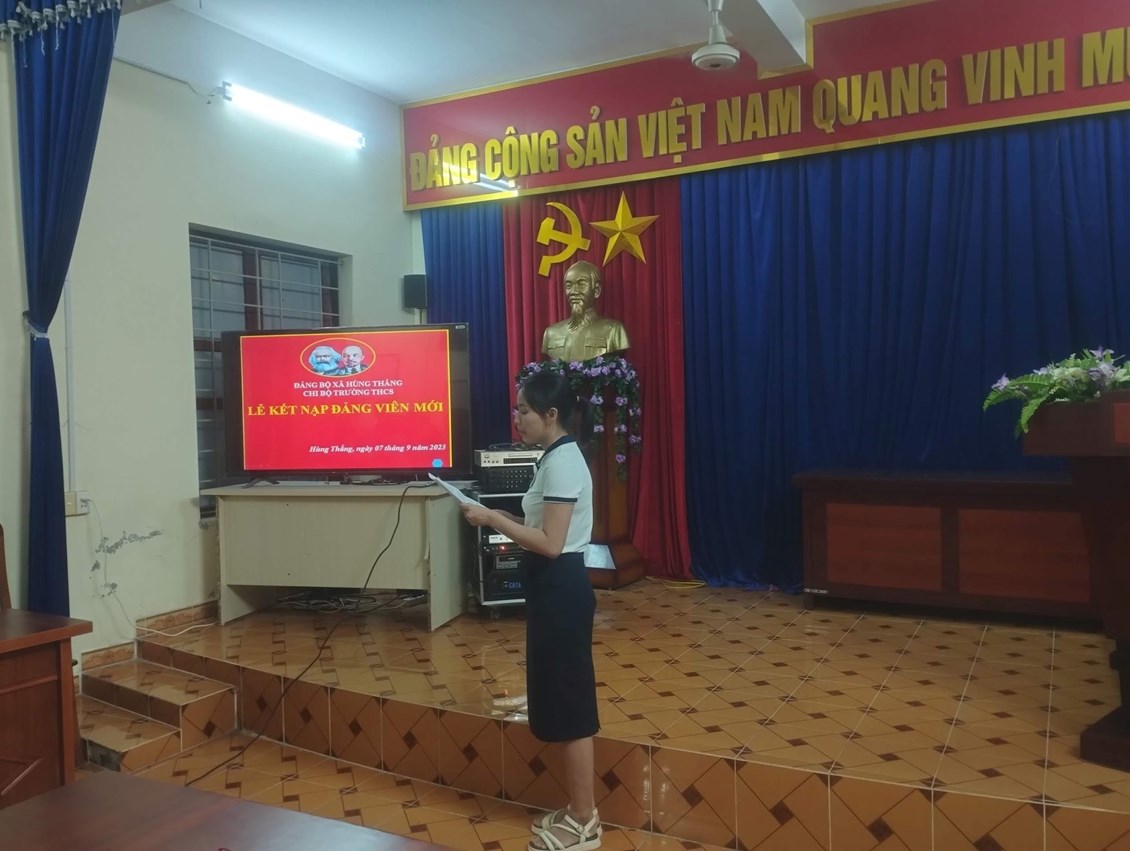 Lễ kết nạp diễn ra theo đúng trình tự, thủ tục điều lệ Đảng dưới sự chủ trì của đồng chí Nguyễn Văn Thịnh– Bí thư Chi bộ,Hiệu trưởng nhà trường cùng tập thể Ban Chi ủy và đông đủ các đảng viên trong Chi bộ.