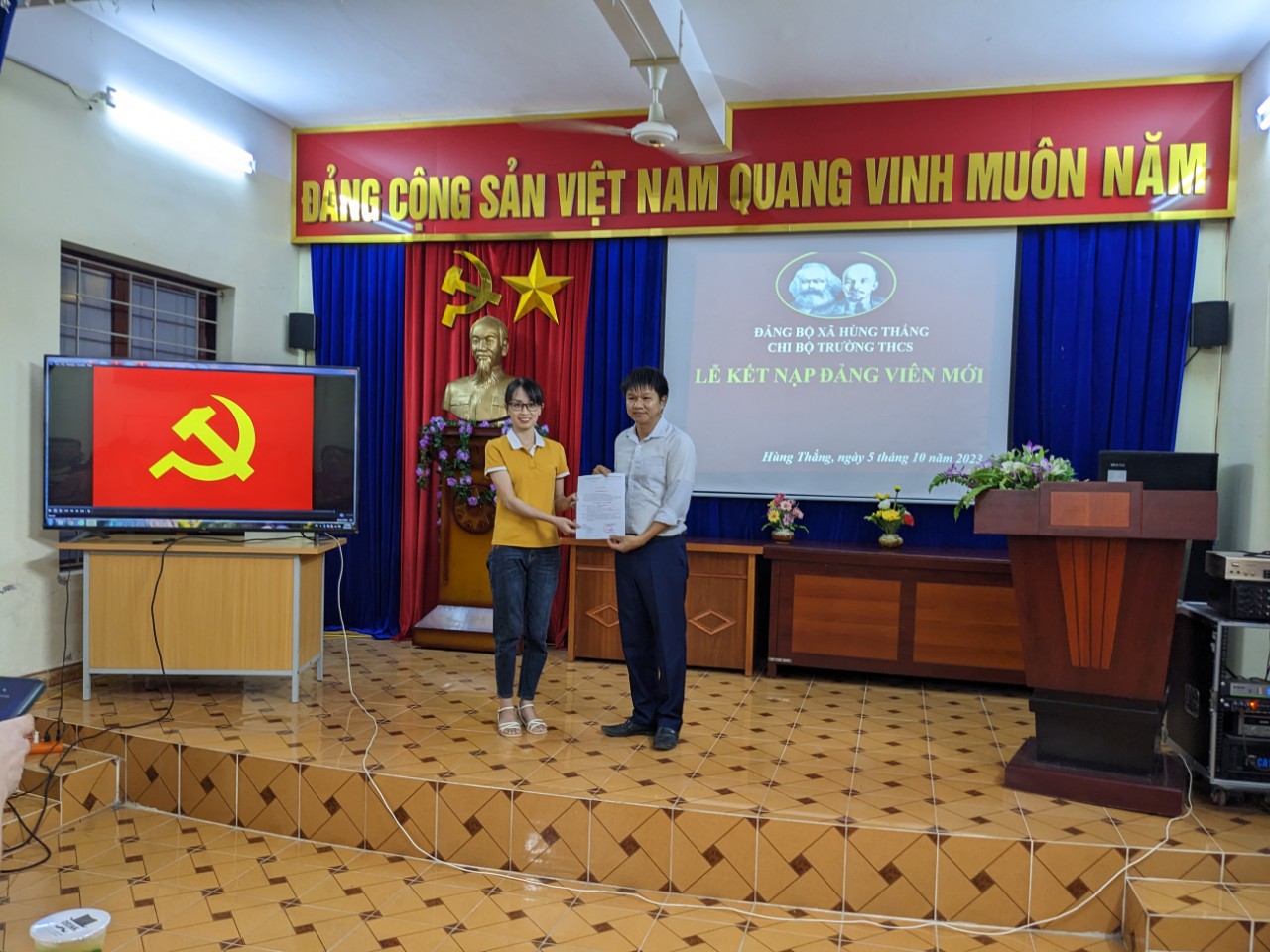 Lễ kết nạp diễn ra trong không khí trang nghiêm,đúng trình tự, quy định của Điều lệ Đảng với sự tham gia đông đủ của các đồng chíĐảng viên trong chi bộ nhà trường.